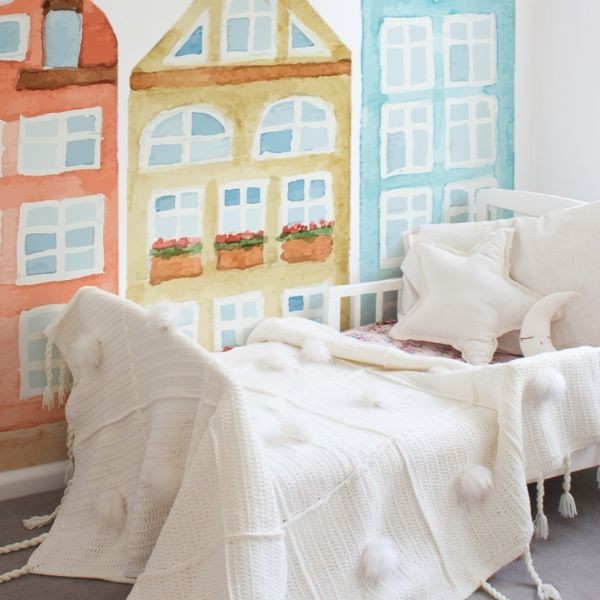 Stickers met huizen zijn een geweldige manier om een kinderkamer op een eenvoudige en snelle manier om te toveren tot een warme, uitnodigende omgeving. Onze stickers zijn ontworpen om een gevoel van veiligheid en herkenning te creëren. Dankzij het patroon van gezellige straten en schattige huisjes ontstaat er een speelse sfeer waarin kinderen zich thuis voelen. De muurstickers zijn perfect ter decoratie en vormen een bijzonder mooi accent dat de kamer karakter geeft. Door hun vriendelijke kleuren en zachte vormen passen ze goed bij verschillende interieurstijlen, of je nu gaat voor modern, Scandinavisch of kleurrijk en speels. Bovendien kunnen de stickers gemakkelijk gecombineerd worden met meubels en andere decoratieve elementen voor een harmonieus geheel.